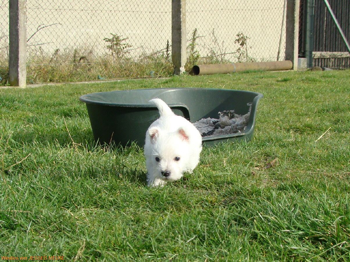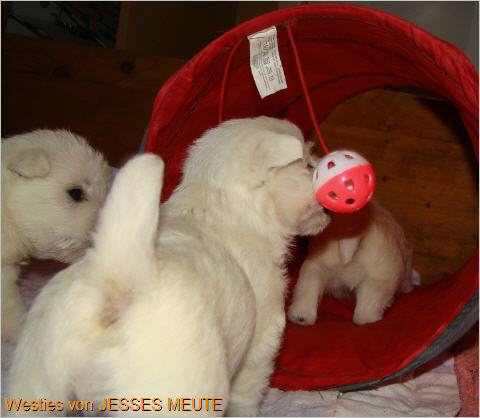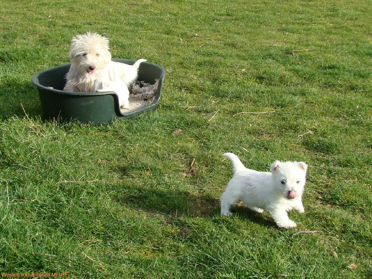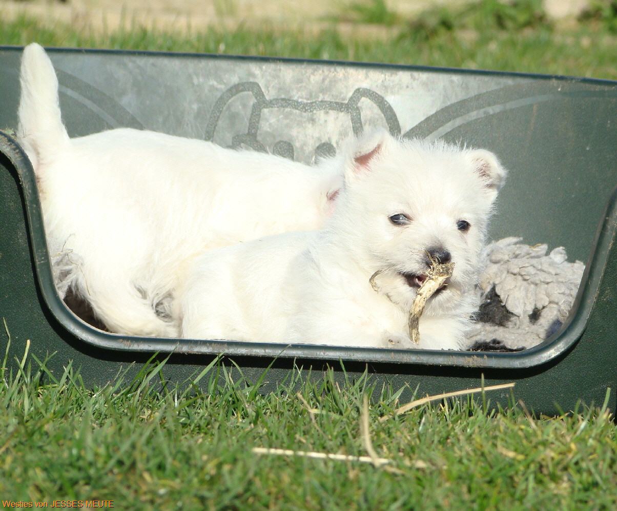 Jetzt gibt es kein Halten mehr . Es wird getobt was die Welpenkiste aushält.