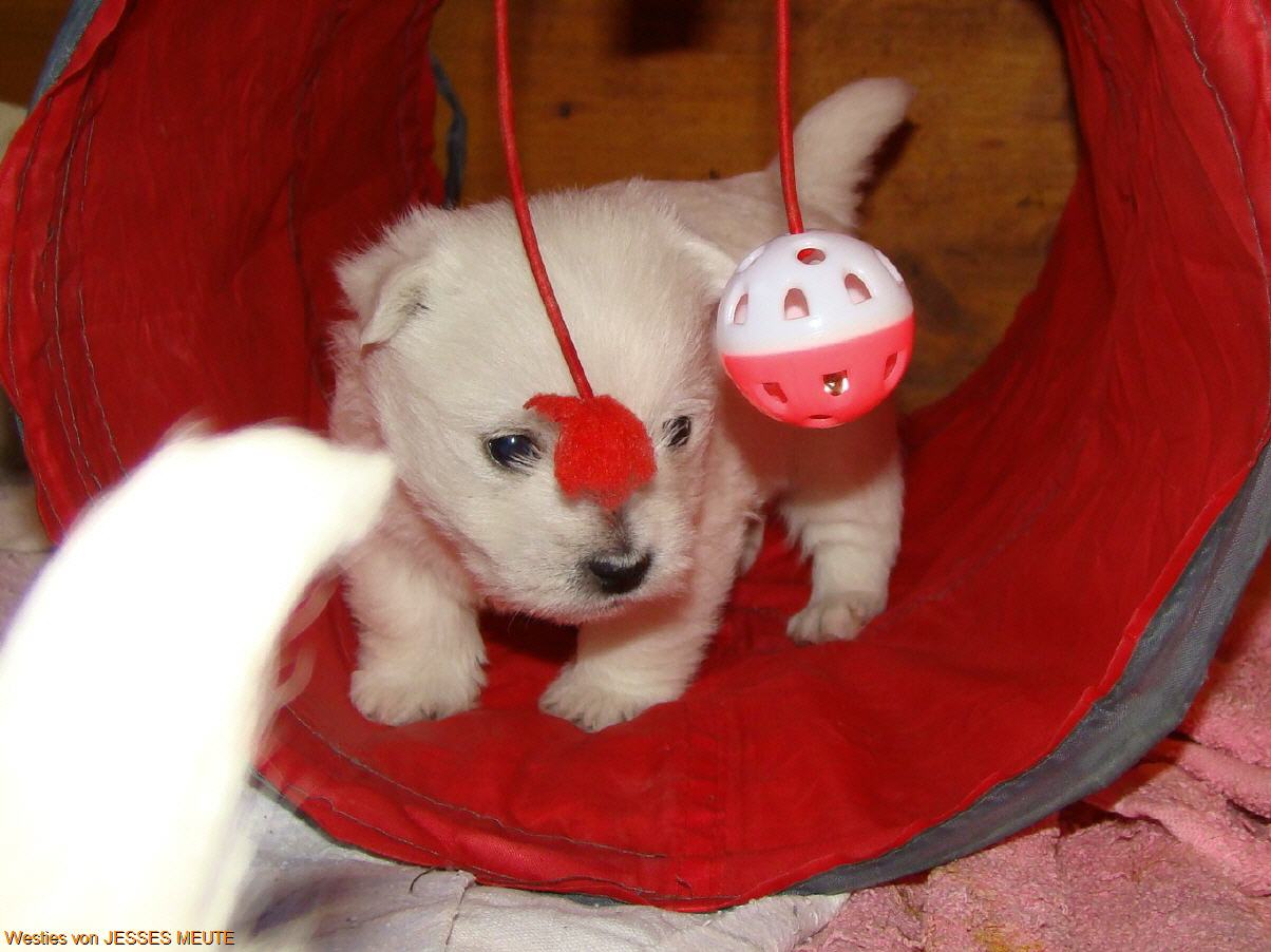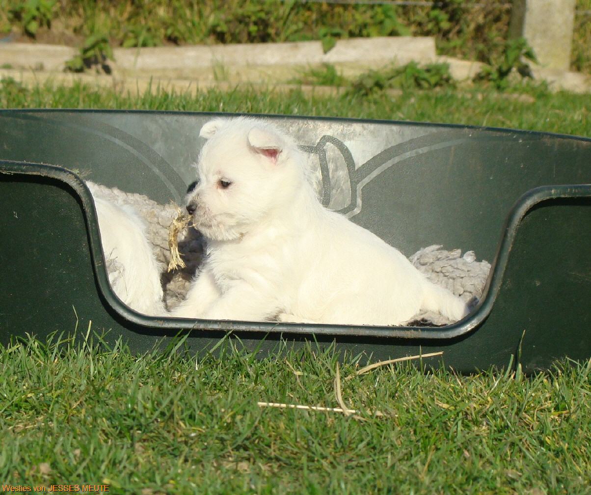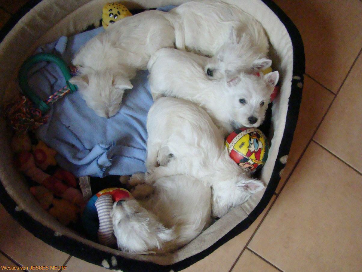 Jetzt gibt es kein Halten mehr . Es wird getobt was die Welpenkiste aushält.