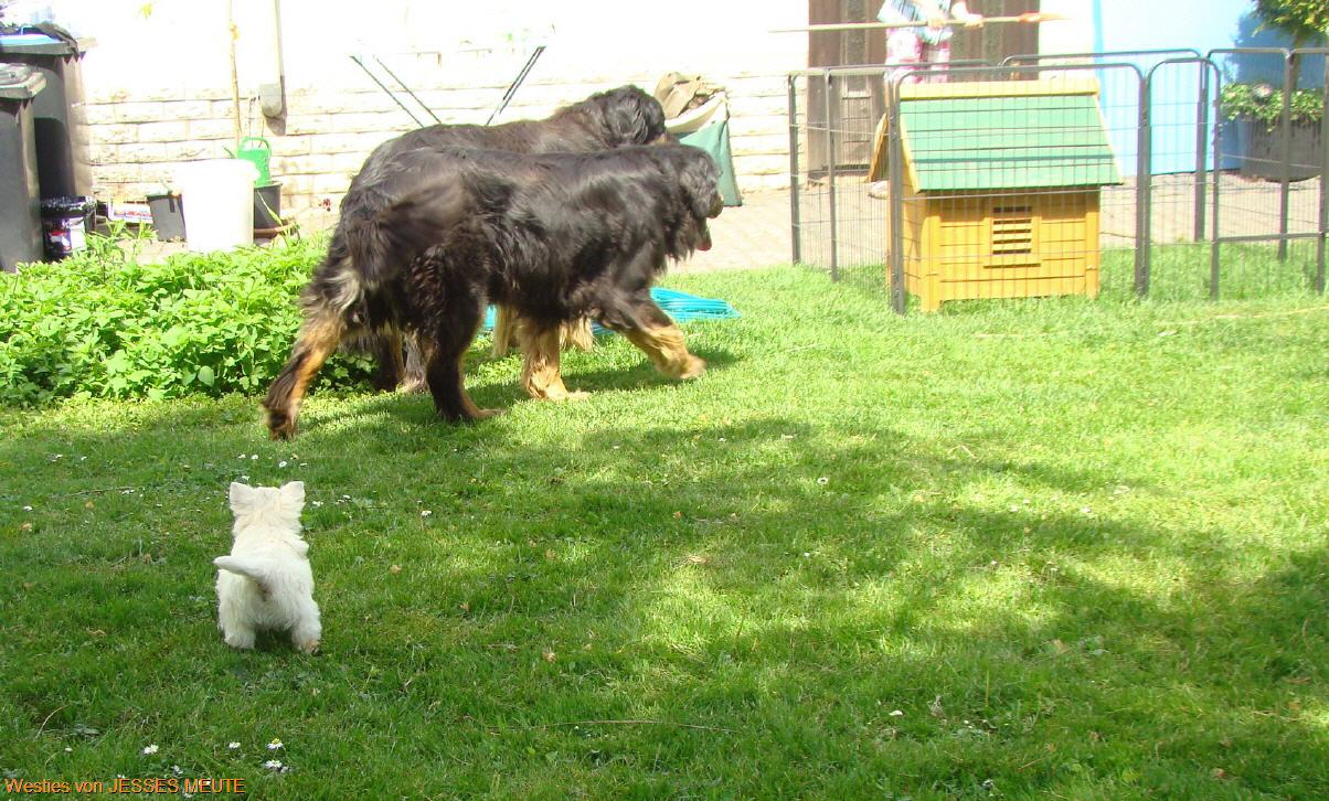 Viel Raum für Spielen und Kennenlernen von den großen Kameraden ( Hovawarte ) alles kein Problem.