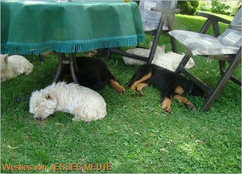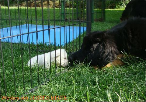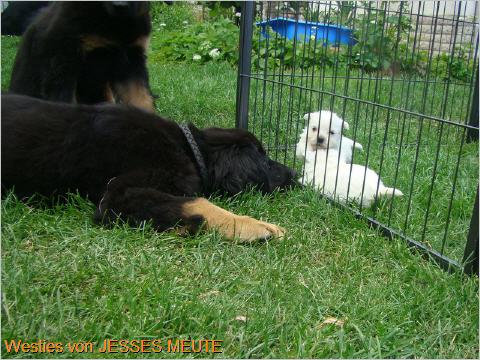 Und dann begegnet man auch gleich die großen Namensvettern " von Jesses Meute " die Hovawarte,