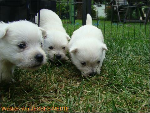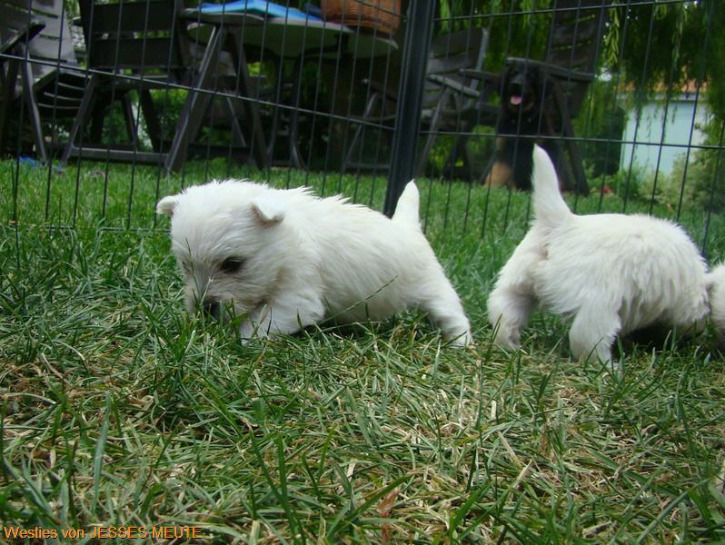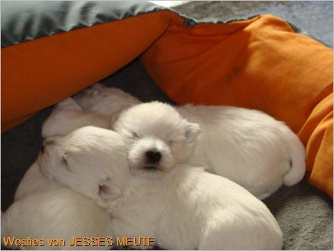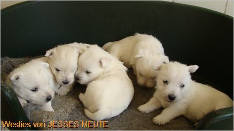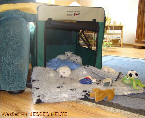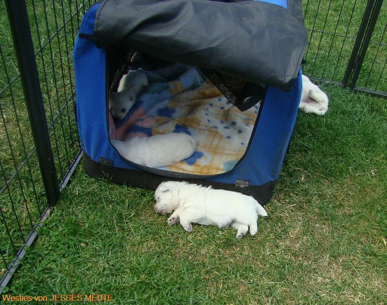 Heute sind die Welpen 4 Wochen alt , sie werden immer aktiver und nehmen ihre Umwelt bewußter wahr.